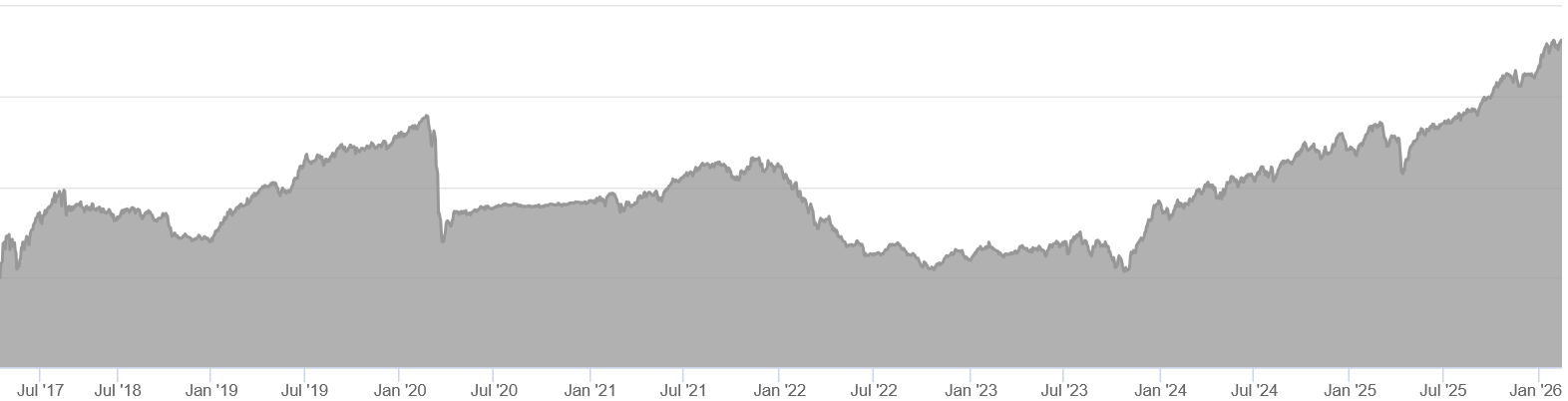 Der Grund, warum sich unsere Kolleginnen und Kollegen aus dem Cockpit über die Anlagestrategie und die Entwicklung unserer bAV beschweren ist klar: Aus 100 Euro am 01.01.2016 wurden zum 01.01.2026 123 Euro. Das entspricht einer Rendite von 2,3% p.A. Die Inflationsrate ist jedoch in dieser Zeit um 2,6% p.A. gestiegen.