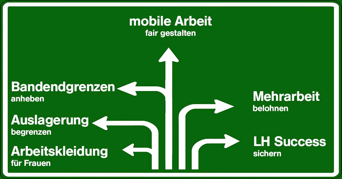 Wir fordern daher die Messgröße zur Vergütung von LH Success auf Basis der Leistung, die in unserem Unternehmen erbracht wurde, stärker zu berücksichtigen, damit die vorgesehene Successzahlung  bei Normalleistung (100%) auch gesichert zur Auszahlung kommt und unsere Kolleginnen und Kollegen durch ihre eigene Leistung direkt auf die Höhe ihrer Successleistung Einfluss nehmen können.